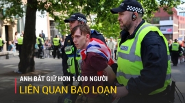 Hội đồng Cảnh sát trưởng Quốc gia Anh cho biết tính đến nay, cảnh sát đã tiến hành 1.024 vụ bắt giữ liên quan đến các vụ bạo loạn tại nhiều thị trấn, thành phố ở England và Bắc Ireland trong hai tuần qua.