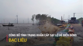 UBND tỉnh Bạc Liêu vừa công bố tình huống khẩn cấp sự cố sạt lở đê biển Đông, đoạn đầu tuyến giáp ranh tỉnh Sóc Trăng, thuộc địa bàn xã Vĩnh Trạch Đông, thành phố Bạc Liêu.