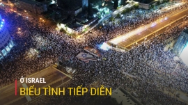 Hàng chục ngàn người dân Israel tiếp tục xuống đường nhằm phản đối kế hoạch cải cách hệ thống tư pháp của chính quyền Thủ tướng Netanyahu. Các cuộc biểu tình diễn ra trong lúc an ninh được thắt chặt sau các vụ tấn công nhằm vào người Do Thái những ngày gần đây.