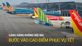 Nhu cầu đi lại bằng đường hàng không những ngày cận Tết đã bắt đầu "nóng" lên tại các sân bay lớn. Tại Cảng hàng không quốc tế Nội Bài, ngày cao điểm nhất của Tết Quý Mão 2023 có thể đón hơn 100.000 lượt khách, với khoảng 580 chuyến bay, trong đó có gần 100 chuyến bay đêm.