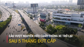 Sau 5 tháng thi công sửa chữa vì sự cố đứt cáp ngầm, cầu vượt Nguyễn Hữu Cảnh, quận Bình Thạnh, TP.HCM đã cho các phương tiện, gồm cả xe ô tô lưu thông trở lại từ hôm nay, 5/3.
