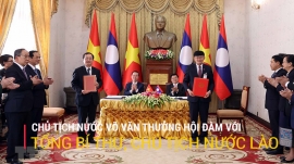 Sáng 10/4, Lễ đón chính thức Chủ tịch nước Võ Văn Thưởng cùng Đoàn đại biểu cấp cao Việt Nam thăm chính thức CHDCND Lào đã diễn ra trọng thể tại Phủ Chủ tịch nước Lào, Thủ đô Vientiane. Tổng Bí thư, Chủ tịch nước Lào Thongloun Sisoulith chủ trì Lễ đón.