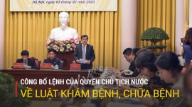 Sáng 03/02, tại Phủ Chủ tịch, Văn phòng Chủ tịch Nước tổ chức họp báo công bố Lệnh của quyền Chủ tịch Nước về Luật Khám bệnh, chữa bệnh vừa được Quốc hội khóa XV thông qua tại Kỳ họp bất thường lần thứ 2. Phó Chủ nhiệm Văn phòng Chủ tịch Nước Phạm Thanh Hà chủ trì họp báo.