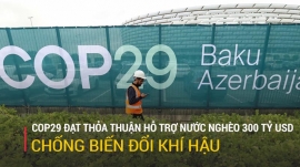 Sau hai tuần đàm phán căng thẳng, đại diện gần 200 quốc gia tham dự Hội nghị thượng đỉnh về khí hậu thường niên lần thứ 29 (COP29) đã thông qua hiệp ước tài chính. Thỏa thuận cam kết hỗ trợ 300 tỷ USD mỗi năm cho các nước nghèo ứng phó với biến đổi khí hậu.