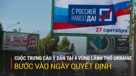 Hôm nay 27/9, cuộc trưng cầu ý dân về việc sáp nhập Nga tại 4 vùng lãnh thổ Ukraine bước vào ngày bỏ phiếu quyết định. Các điểm bỏ phiếu cố định đã mở cửa cả ngày để đón các cử tri cuối cùng.