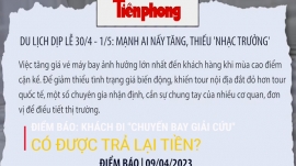 Khách đi ‘chuyến bay giải cứu’ có được trả lại tiền?; Du lịch dịp lễ 30/4 - 1/5: Mạnh ai nấy tăng, thiếu 'nhạc trưởng'; Thừa năm đóng BHXH nhưng lại thiếu tuổi nghỉ hưu: Đề xuất hoán đổi để nghỉ hưu sớm; Nhiều ý kiến trái chiều về việc thu phí tham quan Hội An;...Là những tin tức nổi bật có trong điểm báo ngày 9/4.
