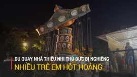 Đu quay tại Nhà thiếu nhi Thủ Đức (TP Thủ Đức, TPHCM) gặp sự cố khi vận hành, nghiêng về một bên khiến nhiều trẻ em một phen hốt hoảng.