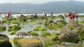 Ghềnh đá Nam Ô thuộc quận Liên Chiểu, thành phố Đà Nẵng, những ngày này bãi đá rạn được phủ màu xanh mướt của rêu biển. Địa điểm này thu hút người dân và du khách đến tham quan, check in vẻ đẹp thiên nhiên tại đây.
