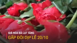 Dịp lễ 20/10, giá nhiều loại hoa tại thủ phủ hoa Đà Lạt (Lâm Đồng) đã tăng mạnh, trong đó hoa hồng đang được các nhà vườn bán với giá từ 4.500 - 6.500 đồng/cành tùy loại, tăng gấp đôi so với ngày thường.