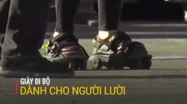 Trong khuôn khổ triển lãm công nghệ CES, một đôi giày trợ giúp cho việc đi bộ đã được ra mắt, cho phép khách tham quan trải nghiệm cảm giác lướt đi nhẹ nhàng.