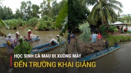 Sáng ngày 5/9, học sinh Cà Mau đến khai giảng năm học mới 2018-2019 trên những chiếc xuồng máy, một phương tiện đặc thù đi lại ở vùng sông nước miền Tây.
