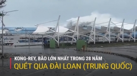 Kong-rey, cơn bão lớn nhất trong 28 năm quét qua Đài Loan (Trung Quốc) gây mưa lớn, mất điện, khiến hàng nghìn người phải sơ tán.