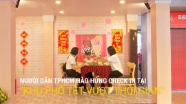 Tại TPHCM, người dân đang rất hào hứng check-in tại “Khu phố tết vượt thời gian". Sau trend “thiệp tết vượt thời gian”, không gian check-in đậm chất tết tiếp tục được người dùng chia sẻ khắp mạng xã hội.
