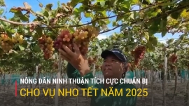 Thời điểm này, các nhà vườn, trang trại, hợp tác xã trồng nho tại “thủ phủ” nho Ninh Thuận đang tất bật chăm sóc các vườn nho để đảm bảo năng suất, chất lượng quả cắt bán cho thương lái, du khách. Đặc biệt, các cơ sở chuẩn bị những giàn nho đẹp, bố trí, sắp xếp các loại hình dịch vụ nhằm mang lại sự hài lòng cao nhất cho du khách dịp nghỉ Tết Dương lịch và Tết Nguyên đán Ất Tỵ năm 2025.