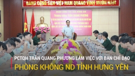 Sáng 10.5, Ủy viên Trung ương Đảng, Phó Chủ tịch Quốc hội, Thượng tướng Trần Quang Phương đã làm việc với Ban Chỉ đạo Phòng không nhân dân tỉnh Hưng Yên, khảo sát về việc xây dựng dự án Luật Phòng không nhân dân.
