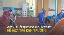 Mặc dù mưa lũ vừa qua chưa gây ra thiệt hại nghiêm trọng cho ngành giáo dục tỉnh Quảng Trị, song mưa lũ đã khiến cho gần 100 điểm trường bị ngập từ 30cm đến gần 1m. Hàng chục ngàn học sinh phải nghỉ học chờ lũ rút. Để có thể đưa 100% học sinh trở lại trường trong những ngày tới, hiện các trường học trên địa bàn tỉnh đang huy động mọi nguồn lực để dọn dẹp vệ sinh, đưa đồ dùng học tập từ trên cao xuống lớp… Phóng viên Võ Linh đang có mặt tại một điểm trường tại huyện Triệu Phong thông tin thêm về công tác này.