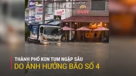 Rạng sáng 9.10, do ảnh hưởng của bão số 4, trên địa bàn tỉnh Kon Tum xảy ra mưa lớn kéo dài trong nhiều giờ khiến nhiều tuyến đường ngập sâu, giao thông bị ách tắc, tê liệt.