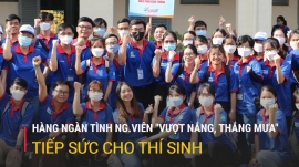 Hàng ngàn tình nguyện viên là sinh viên các trường đại học, cao đẳng đã tiếp sức cho thí sinh dự thi tốt nghiệp THPT 2024 tại TP.HCM.