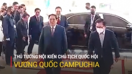 Chiều 8/11, tại Trụ sở Quốc hội Campuchia, Thủ tướng Chính phủ Phạm Minh Chính đã hội kiến với Chủ tịch Quốc hội Campuchia Heng Samrin tại trụ sở Quốc hội Vương quốc Campuchia.