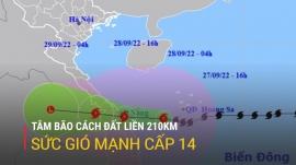 Theo Trung tâm Dự báo khí tượng thủy văn Trung ương, lúc 16 giờ hôm nay, vị trí tâm bão cách đất liền khu vực Đà Nẵng- Quảng Ngãi khoảng 210km về phía Đông. Sức gió mạnh nhất vùng gần tâm bão mạnh cấp 14, giật cấp 17.