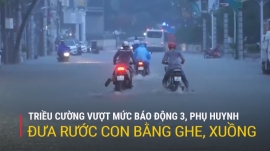 Triều Cường Vượt Mức Báo Động 3, Phụ Huynh Đưa Rước Con Bằng Ghe, Xuồng