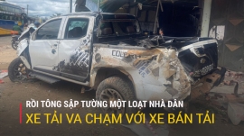 Xe Tải Va Chạm Với Xe Bán Tải Rồi Tông Sập Tường Một Loạt Nhà Dân